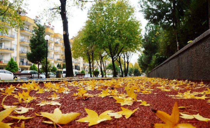 Sonbahara veda edemeyen Aydın’da sarı renklerin hakim olduğu ağaçlar ve dökülen yaprakları şehre ayrı bir güzellik katıyor.