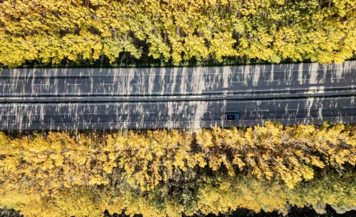 Tokat’ta karayolunda bulunan kavak ağaçlarının yeşil ve sarının eşsiz kontrastı, sonbaharda sürücülere görsel bir şölen sunuyor.