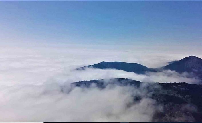 Manisa’da bin 517 metre yüksekliğe sahip Spil Dağı’nın zirvesinde bulutların oluşturduğu görsel şölen seyri doyumsuz manzaralar oluşturdu.