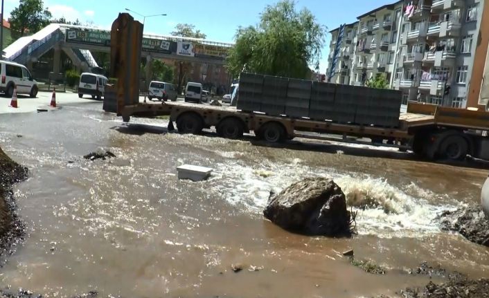 Erzurum’da yol yapım çalışması sırasında su borusu patladı. Patlamanın ardından yollar adeta göle döndü.