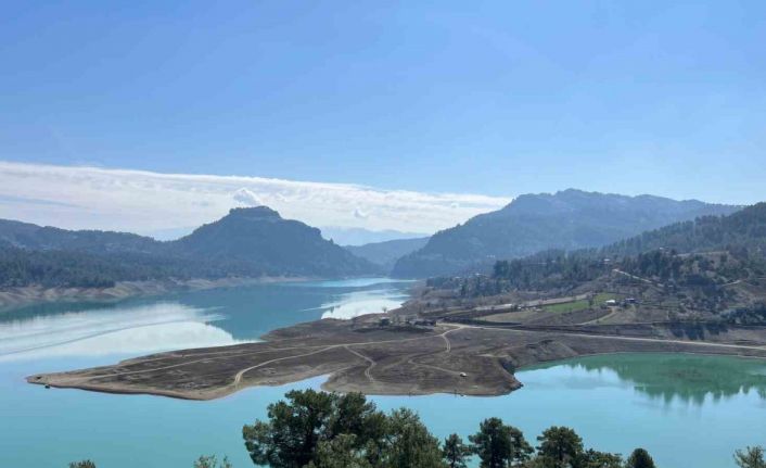 Kahramanmaraş’ın Onikişubat ilçesindeki Menzelet Barajı altında kalan eski yerleşim yeri su çekilmesi sonucu ortaya çıktı.