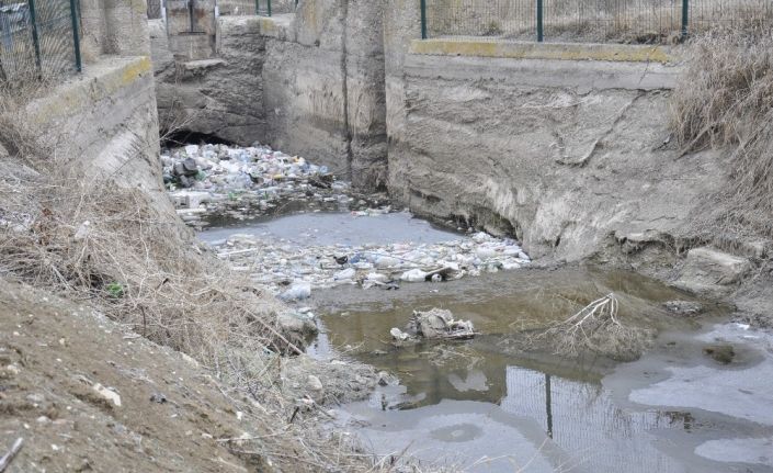 Yeşiltepe mahallesinde bulunan sulama kanalı soğuk havaların etkisiyle buz tutarken, kanalın içerisinde yer alan çöpler ise gün yüzüne çıktı.
