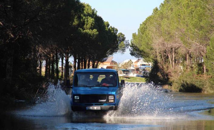 Turizm kenti Antalya’ya yağışların geç gelmesine rağmen, aralıksız yağan sağanak yağmurlar çiftçinin yüzünü güldürdü.Su debilerinin yükseldiği dere ve baraj göletlerinde deyim yerindeyse toprak suya doydu. Son yağışların ardından Aksu’nun Kumköy Sahiline inen yol ve kenarındaki arıklarda suyla doldu taştı. Fıstık çamları zemininin suyla kaplandığı bölgede, ulaşımı sağlayan yolun yaklaşık 300 metrelik bölümü de sular altında kaldı. Sahile geçmek isteyen ve balık tutmak isteyen vatandaşlar ise araçlarıyla sudan geçerken zorlandı. Motor kaputuna kadar yükselen su nedeniyle bazı araçlar suda kaldı. Sürücüler çalışmayan araçlarını iterek güvenli noktaya çıkardı. Su dolu yola girmeyi göze alamayan bazı sürücülerin ise geri dönüş yaptığı görüldü. Su kaplı yol ve sürücülerin zor anları havadan da görüntülendi.