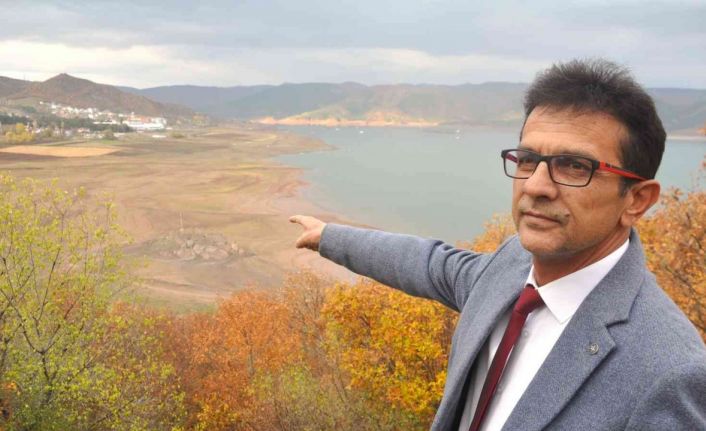 Tokat’ta baraj gölünde su seviyesinin düşmesi sonucu kayalık alan ortaya çıktı.
