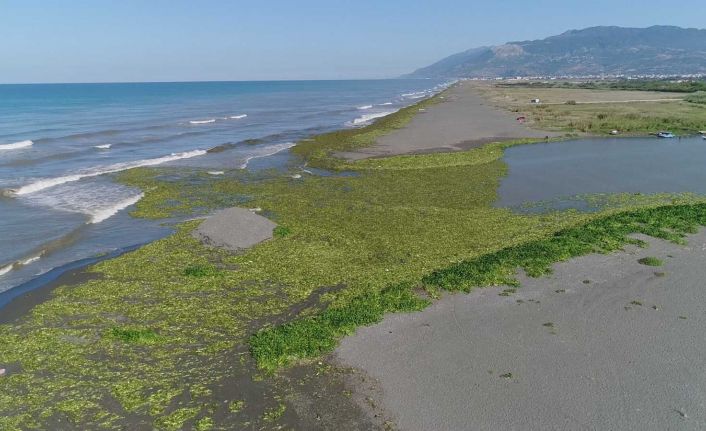 Hatay’da sağanak nedeniyle Asi Nehri’nin yüzeyini kaplayan istilacı su sümbülleri Akdeniz’e sürüklenmesi sonucu Samandağ sahilini kapladı.