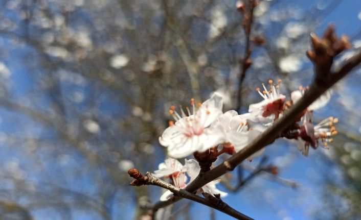 Şubat ayında güneşi gören ağaçlar çiçek açtı