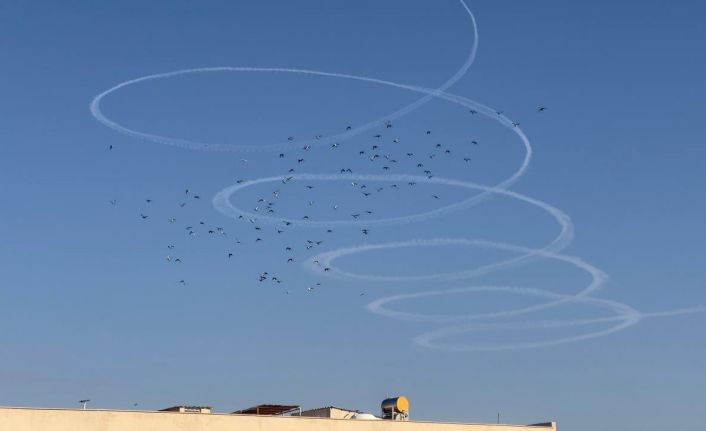 Şanlıurfa’nın Ceylanpınar ilçesinde Suriye sınır hattında ilerleyen uçağın çizdiği şekiller vatandaşlarda büyük bir merak uyandırdı.