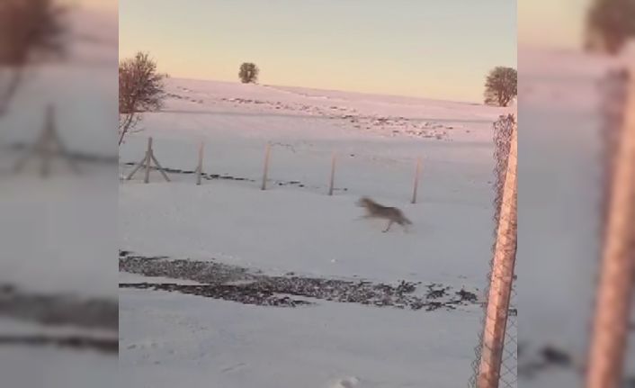 Sivas’ta tel örgülü alanda mahsur kalan bir kurdun kurtulma çabası cep telefonu kamerasına yansıdı. Kurt, bir süre çıkış aradıktan sonra telin üzerinden atlayarak sürüsüne kavuştu.