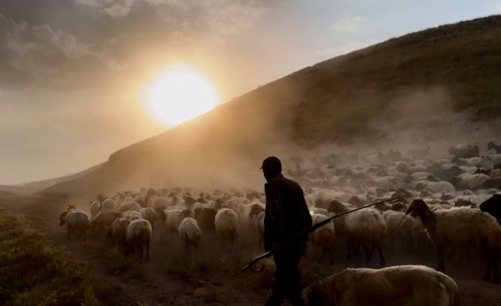 Bitlis’in Tatvan ilçesine bağlı Kıyıdüzü köyünde koyun sürülerinin Nemrut Dağı’ndaki yaylalara zorlu ve tozlu yolculuğu başladı.