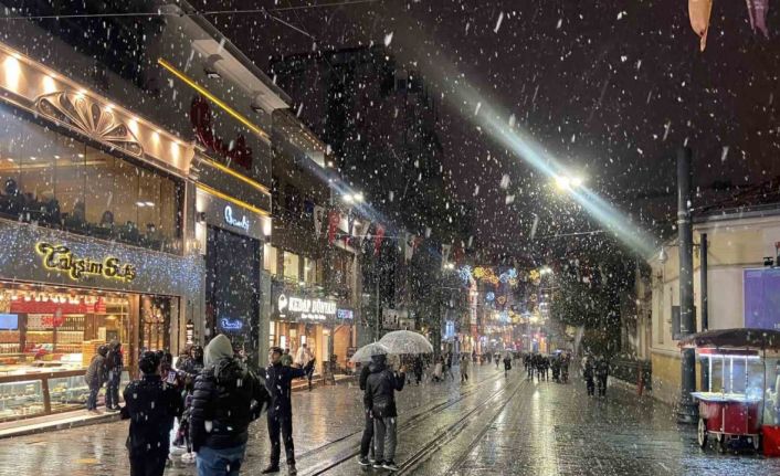 Taksim’de yılın ilk karı lapa lapa yağdı. İstiklal Caddesi’nde vatandaşlar karın tadını bol bol fotoğraf çekerek çıkardı.