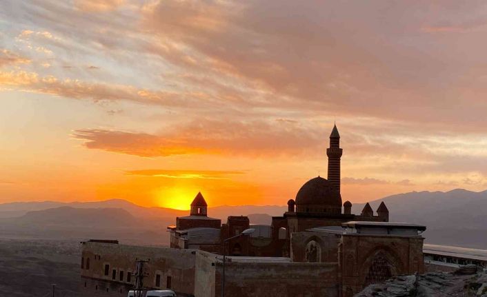 Ağrı’nın Doğubayazıt ilçesinde bulunan ve Osmanlı Devleti’nin doğudaki en önemli eserleri arasında yer alan İshak Paşa Sarayı’nın ihtişamlı görüntüsü, gün batımıyla birleşince ortaya eşsiz bir manzara çıktı.