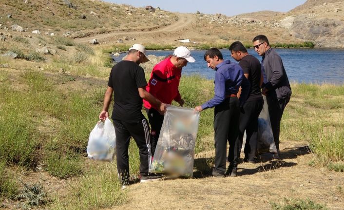 Hakkari’de Yüksekova Tarım ve Orman Müdürlüğü çalışanları, 3 bin 400 rakımda bulunan Sat Buzul Göllerinde 500 kiloya yakın çöp topladı.