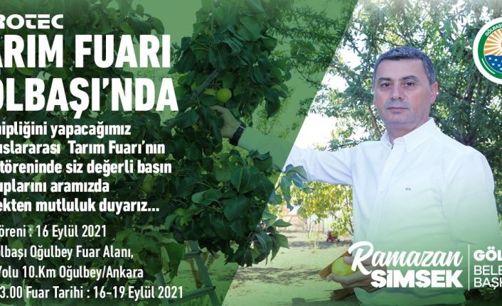 Tarım Sektörü 16-19 Eylül’de AGROTEC 2021 24. Uluslararası Tarım Fuarı’nda buluşacak. Tarım fuarına ev sahipliği yapacak olan Gölbaşı Belediye Başkanı Ramazan Şimşek, “Fuar vesilesiyle 60 bin kişinin Gölbaşı’na gelmesini hedefliyoruz” dedi.
