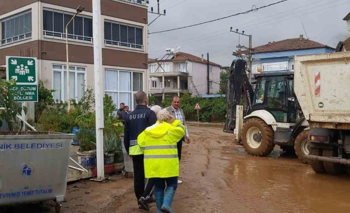 Bursa’nın İznik ilçesinde taşan derelerin getirdiği taş ve topraklar, belediye ekiplerinin kısa sürede müdahalesiyle kaldırıldı.
