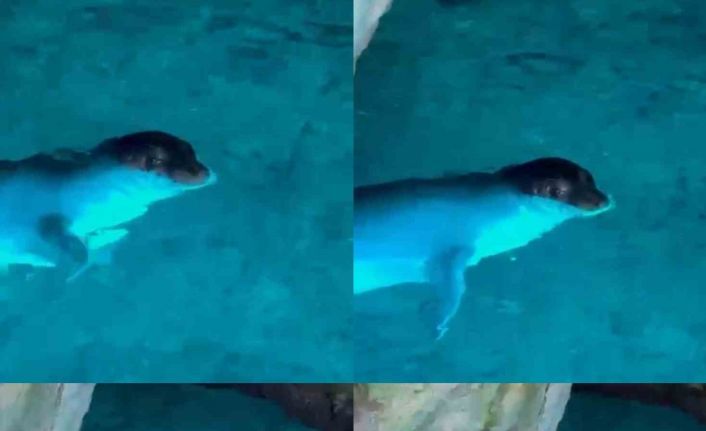 Mersin’de tekne turuna çıkan tatilciler, koydaki Güvercin Mağarası’nda nesli tükenme tehlikesi altındaki Akdeniz foklarından biriyle karşılaştı.