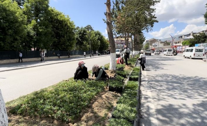 Bitlis’in Tatvan Belediyesi tarafından refüjlerde başlatılan çiçeklendirme çalışmaları kadınlar tarafından yürütülüyor.