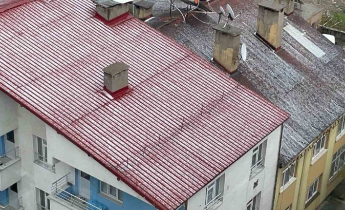 Bitlis’in Tatvan ilçesinde etkili olan dolu yağışı kenti beyaza bürüdü.