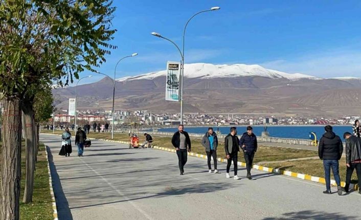 Bitlis’in Tatvan ilçesinde hava sıcaklığının 7 dereceyi bulmasıyla vatandaşlar güneşin tadını çıkarmak için Van Gölü sahiline akın etti.
