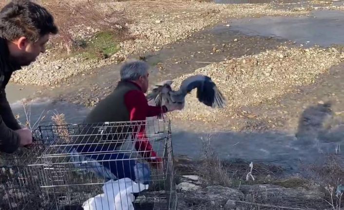 Karabük’ün Safranbolu ilçesinde yaralı halde bulunduktan sonra tedavi edilen gri balıkçıl yeniden doğal ortamına salındı.