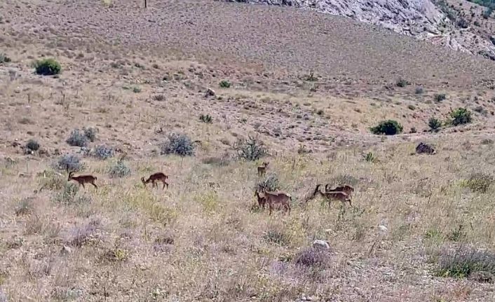 Sivas’ın Gürün ilçesinde nadir görülen dağ keçilerinin sürü halinde görülmesi sevindirdi.