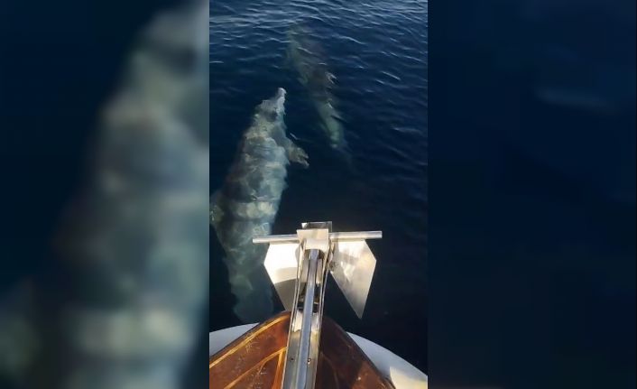 Tekirdağ’ın Marmaraereğlisi ilçesi açıklarında denize açılan bir tekne, kendisine eşlik eden iki yunusla karşılaştı.
