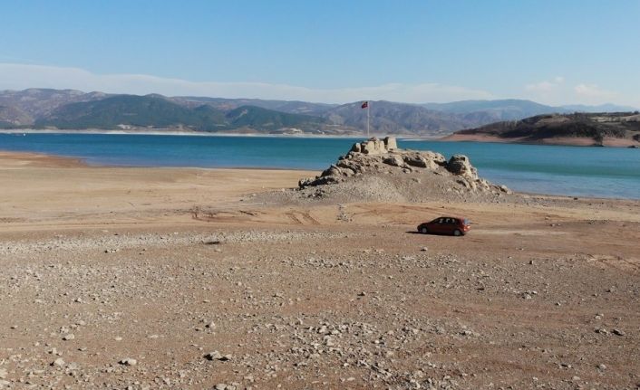 Tokat’ta baraj gölünde su seviyesinin düşmesi sonucu vatandaşlar, tekneyle gidilebilen kayalıklara artık otomobilleri ile gidebiliyor.