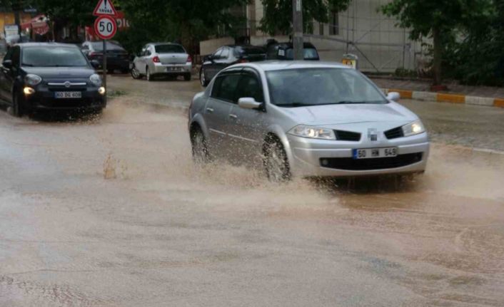 Tokat’ta etkili olan sağanak caddeleri göle çevirdi, araç trafiğini olumsuz etkiledi.