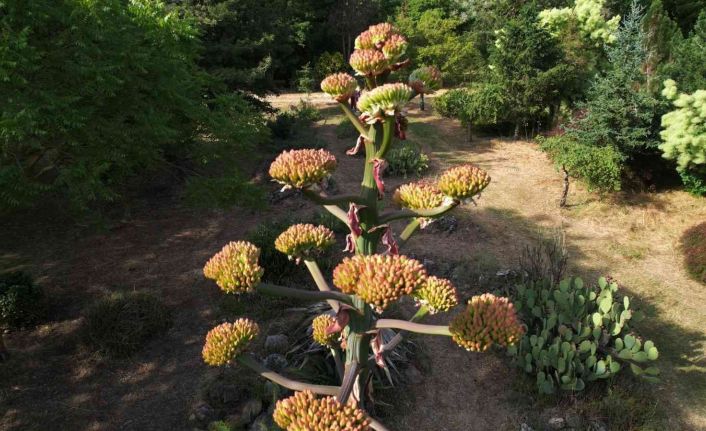 Yalova’daki Karaca Arboretumu’na TEMA Vakfı kurucusu merhum Hayrettin Karaca tarafından dikilen ve ’sabır çiçeği’ olarak da bilinen agave 40 yıl sonra açtı.
