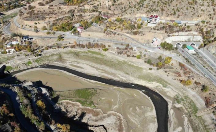 Gümüşhane’nin Torul ilçesinde enerji üretimi için kurulan Torul Barajı’nda sularının çekilmesiyle göl yerini çöl manzarasına bıraktı.