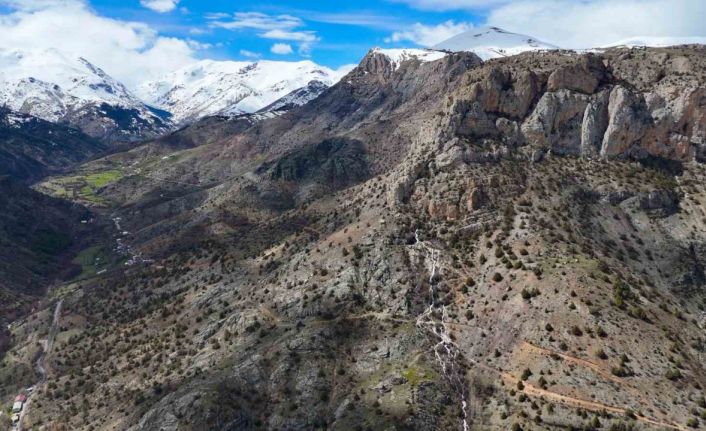 Mağaralarda biriken kar suları şelaleye dönüşüyor
