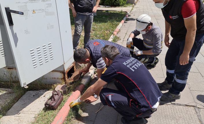 Karabük’te kent meydanında bulunan elektrik trafosuna alt kısmına girerek mahsur kalan yavru kedi, itfaiye ekiplerinin uzun uğraşları sonucu oksijen tüpü sayesinde kurtarıldı.