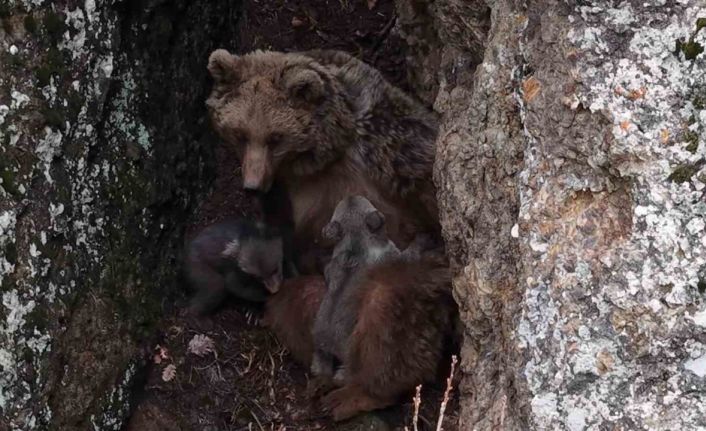 Tunceli’de kaydedilen görüntüler, yaban hayatının en özel anlarından birini gözler önüne serdi. Dağlık alanda görüntülenen bir ayılar ve yavruları, izleyenlere adeta belgesel sahnelerini aratmayan anlar yaşattı. Görüntülerde bir anne ayının yavrularını emzirdiği anlar net bir şekilde kaydedildi. Bir süre sonra hareketlenen yavruların kayalık alana doğru ilerlediği, annenin ise onları dikkatle yönlendirdiği görüldü. Zorlu arazi şartlarında ilerlemekte zorlanan yavrularına yardım eden anne ayı, zaman zaman geri dönerek onların güvenli şekilde tırmanmasını sağladı.