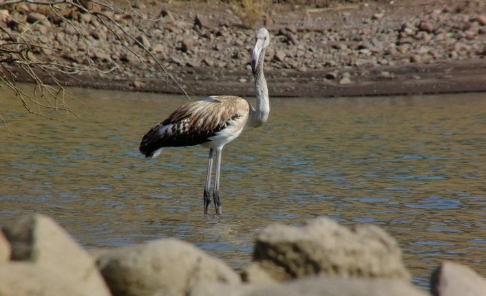 Tunceli’de göç yolunda sürüden ayrıldığı düşünülen flamingo görüntülendi.