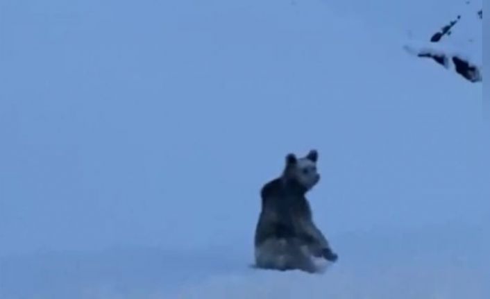 Tunceli’de kış uykusunda olması gereken bir boz ayı, karlı yollarda gezinirken bir vatandaş tarafından cep telefonu kamerasıyla görüntülendi.