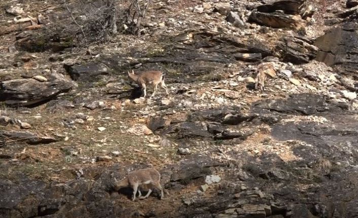 Tunceli’de koruma altında bulunan yaban keçileri görüntülendi.
