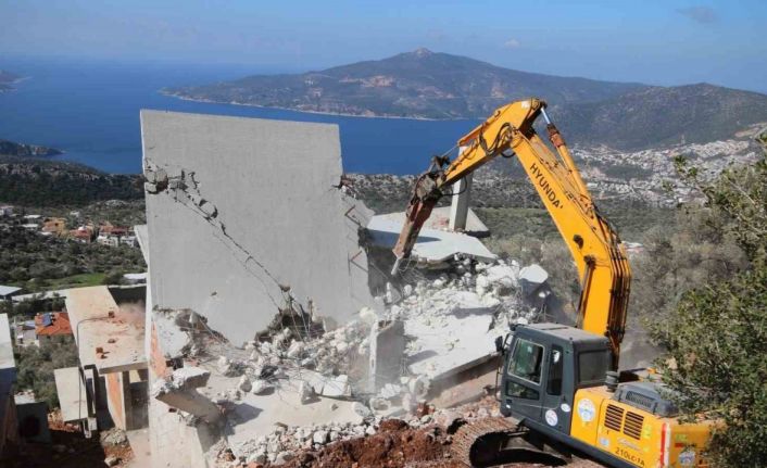 Antalya’nın Kaş ilçesinde kaçak yapılarla mücadele devam ediyor. Bu çerçevede Likya Yolu üzerinde deniz manzaralı yüzme havuzlu 2 yapının yıkım işlemine başlandı.