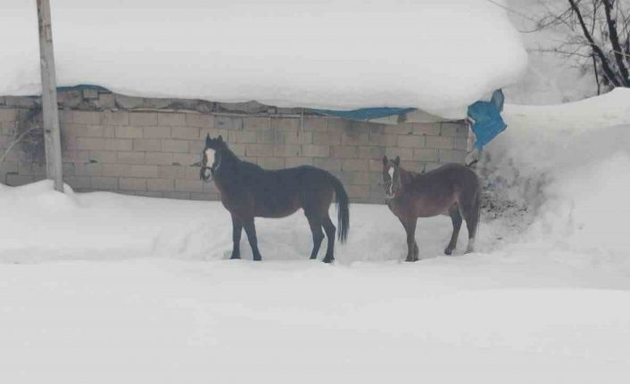 Hakkari’nin Yüksekova ilçesinde kışın kimsenin ikamet etmediği ve kar nedeniyle yolu kapanan köyde terk edilen 2 at kurtarılarak koruma altına alındı.
