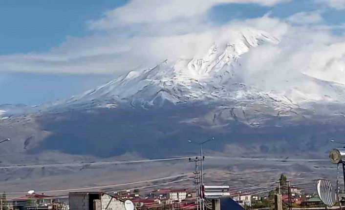 Ağrı’da hava sıcaklarının aniden düşmesiyle beraber kentin yüksek kesimlerindeki bazı bölgelerde kar yağışı etkili olurken, Türkiye’nin en yüksek noktasında bulunan 5 bin 137 metre yüksekliğe sahip Ağrı Dağı da beyaza büründü. Bulutların arasından ihtişamıyla yükselen Ağrı Dağı, zirvesindeki karla göz kamaştırdı.