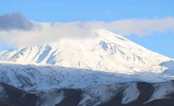 5 bin 137 metre yüksekliği ile ’Türkiye’nin çatısı’ olarak bilinen Ağrı Dağı, kar yağışı ile birlikte eteklerine kadar beyaza büründü.