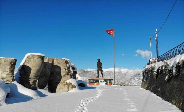 Artvin’de Sıtkı Kahvecioğlu Vakfı tarafından yaptırılan ve 19 Mayıs 2012’de törenle açılışı yapılan, 22 metre yüksekliği ve 50 ton ağırlığıyla Türkiye’nin en büyük Atatürk Anıtı’nın bulunduğu Atatepe’de kardan nasibini aldı. Şehrin hemen üzerine bulunan Genya dağı eteklerinde yer alan Atatepe’de bulunan heykel bu kez beyaza bürünmüş hali havadan görüntülendi. Heykelin yanında bulunan dev Türk bayrağı ve şehrin karlı hali görenleri mest etti.