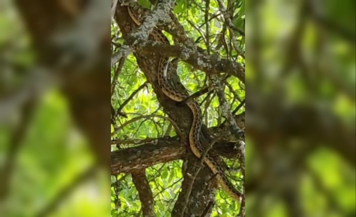 Türkiye’de yaşayan en büyük yılanlardan olan sarı yılan Tunceli’nin Pülümür ilçesinde görüntülendi. Zehirsiz bir tür olan yılanın ağaca tırmanması bir vatandaş tarafından kayıt altına alındı.