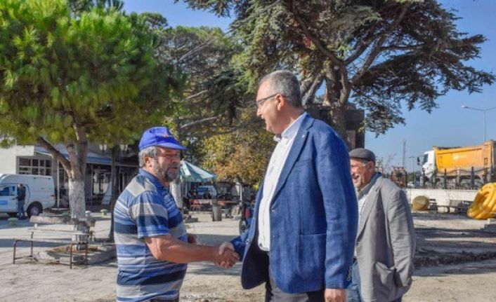 Uluabat Mahalle Muhtarı Şevket Aşnı ile birlikte çalışmaları inceleyen Özkan, vatandaşlarla da sohbet etmeyi ihmal etmedi.