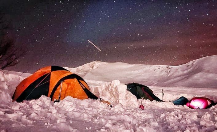 Bursa’da özel bir şirkette çalışan ve arama kurtarma ekibi üyesi Adem Gür ve arkadaşları, hafta sonunu tatilini 2543 metre ile Marmara Bölgesi’nin en yüksek noktasında Uludağ’da kamp atarak değerlendirdi. Çadırından uyku tulumuna, kamp ocağından tenceresine, içeceğinden yapacağı yemeğine kadar tüm malzemelerini sırt çantasında taşıyan ekip, Uludağ İkinci Oteller Bölgesinde kamp attı. Sıfırın altında 30 dereceye dayanacak donanıma sahip malzemelerle, 1.5 metreyi bulan karın üzerinde çadır kuran Gür ve arkadaşları, fırtınadan etkilenmemek için kar duvarı yaparak önlemi aldı. Gece - 15 dereceyi bulan kampta konforundan ödün vermeyen ve Uludağ’ın eşsiz manzarasında milyonlarca yıldızın altında geceyi çadırda kalarak geçiren dağcılar, çektikleri gece fotoğrafları ile o anları kayıt altına almayı ihmal etmiyor.