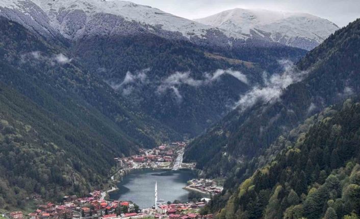 Trabzon’un Çaykara ilçesindeki dünyaca ünlü turizm merkezi Uzungöl’ün yüksek kesimleri beyaz örtüyle kaplandı.