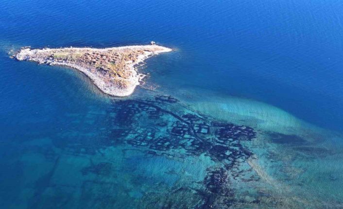 Bitlis’in Ahlat ilçesine 18 kilometre mesafedeki kıyı şeridinde bulunan adacığın çevresinde görülen su altındaki yapı kalıntıları gün geçtikçe daha belirgin hale geliyor.