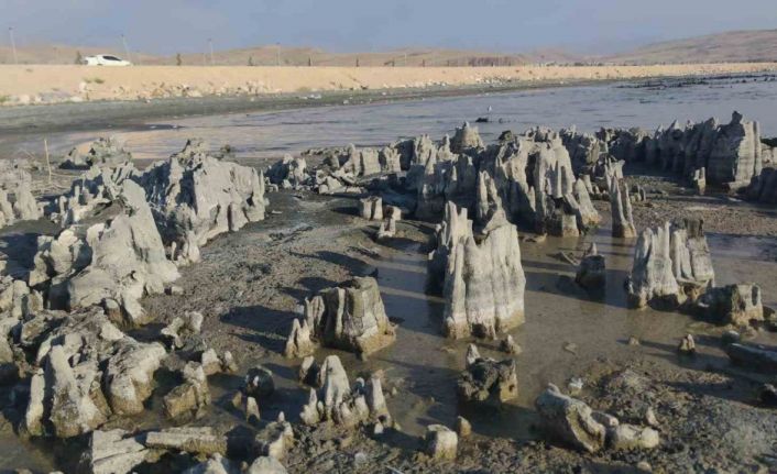 Türkiye’nin en büyük gölü ve dünyanın en geniş sodalı gölü olan Van Gölü, iklim değişikliğinin yol açtığı kuraklık nedeniyle her geçen gün küçülüyor. 3 bin 712 kilometrekarelik alana sahip göldeki çekilme, belirgin şekilde gözlemleniyor. Yağışların azalması ve aşırı buharlaşma dolayısıyla önemli miktarda su kaybının yaşandığı gölün sığ noktalarındaki çekilme yüzlerce metreyi buluyor. Oluşumu asırlar süren mikrobiyalitler, geçmiş dönemlerde seviyenin yükselmesiyle su altında kalan tarihi yapılar ve yerleşim alanlarının, kuraklığın etkisiyle ortaya çıktığı gölün kıyılarındaki değişim uydu görüntülerine de yansıyor.