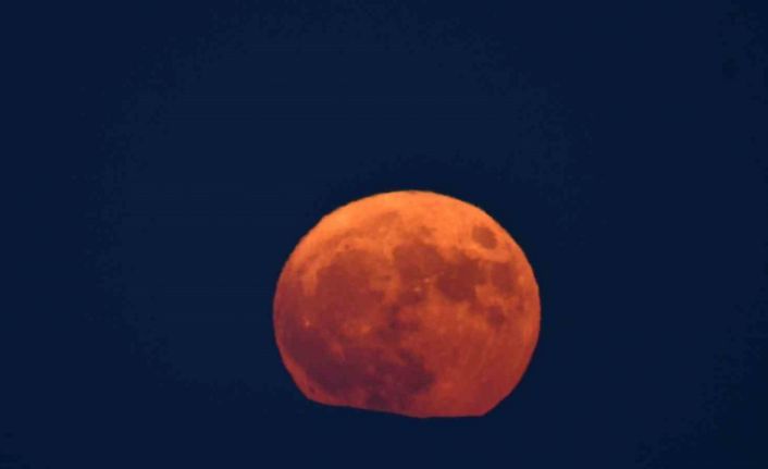 Bitlis’in Ahlat ilçesinde Van Gölü üzerinde yükselen dolunay izleyenleri mest etti.