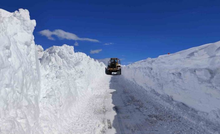Van’ın Başkale ilçesine bağlı Aydemir grup yolunda nisan ayında yer yer 5 metreyi bulan karda yol açma çalışmaları devam ediyor.