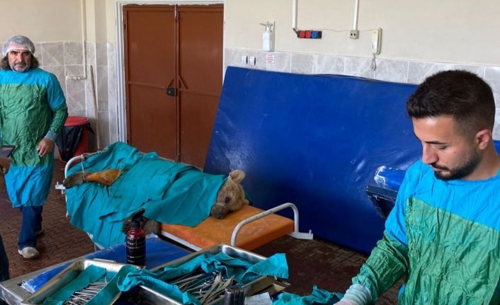 Van’ın Çaldıran ilçesinde aracın çarpması sonucu ayağı kırılan ayı tedavi altına alındı.