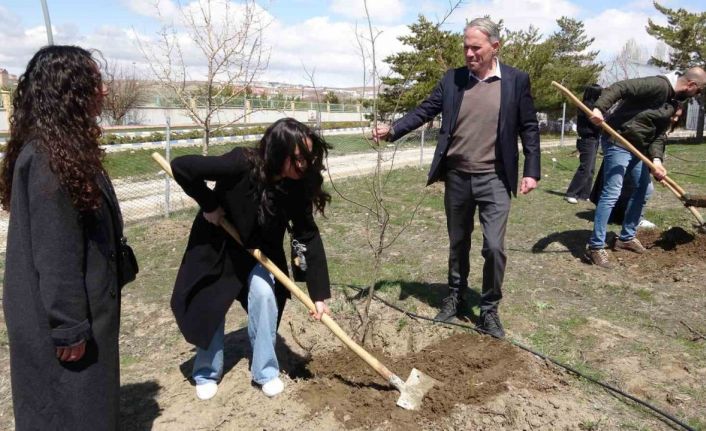 Van Yüzüncü Yıl Üniversitesi (Van YYÜ) yerleşkesinde 100 öğrencinin katıldığı etkinlikte yerel meyve fidanları toprakla buluşturuldu.